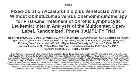 1009 Fixed-Duration Acalabrutinib Plus Venetoclax with or without Obinutuzumab Versus Chemoimmunotherapy for First-Line Treatment of Chronic Lymphocytic Leukemia: Interim Analysis of the Multicenter, Open-Label, Randomized, Phase 3 AMPLIFY Trial